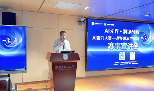 为提升学生数智化应用能力、激发AI创新,广东财经大学启动“AI能力大赛——智能体应用创新”活动。大赛专为全体在校学生开设,由网络信息与教育技术中心主办,校学工部、校团委以及超星指针集团协办。4月9日下午,赛事宣讲会在佛山校区同心楼101报告厅举办,现场气氛热烈,130多名怀揣AI应用热情的同学参会交流。