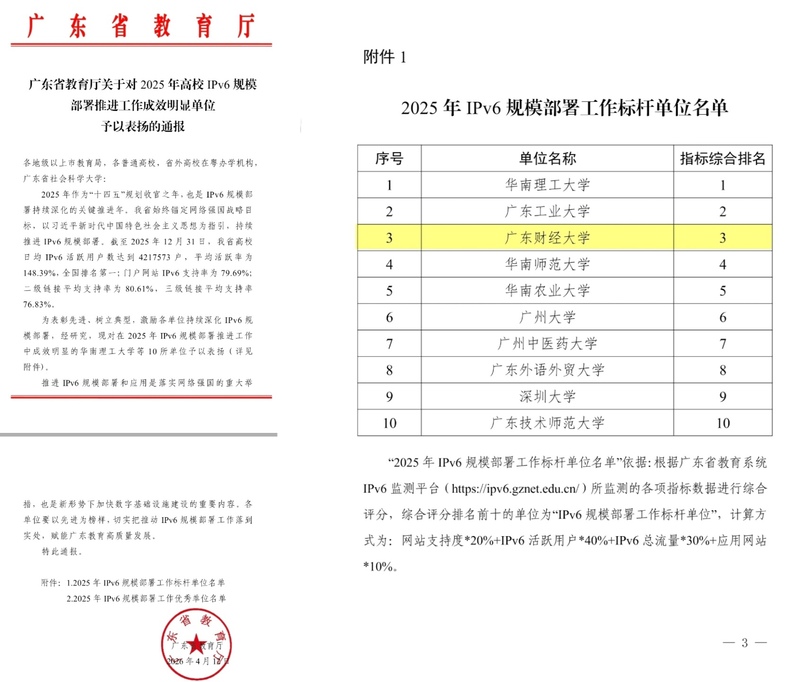 我校获评“2025年IPv6规模部署工作标杆单位”,全省排名第三